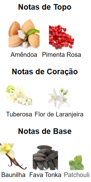 Um perfume compartilhável, forte, intenso, ideal para dias frios, uma nota de pimenta, amêndoa, flor de laranjeira e caramelo se destacam e trazem um ar amadeirado picante doce. Muito gostoso e confortável, nada oud.