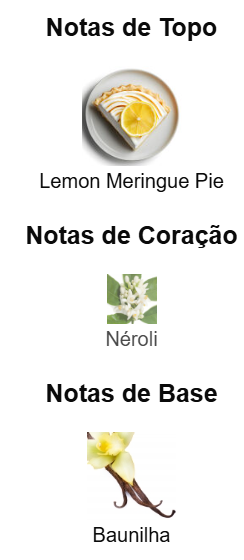 Victoria é uma fragrância surpreendente! A abertura com limão merengue traz um frescor adocicado, que logo evolui para um toque floral limpo e sofisticado. A baunilha na base dá um acabamento aconchegante e levemente cremoso, sem exageros. O perfume consegue ser doce na medida certa, sem ser enjoativo.